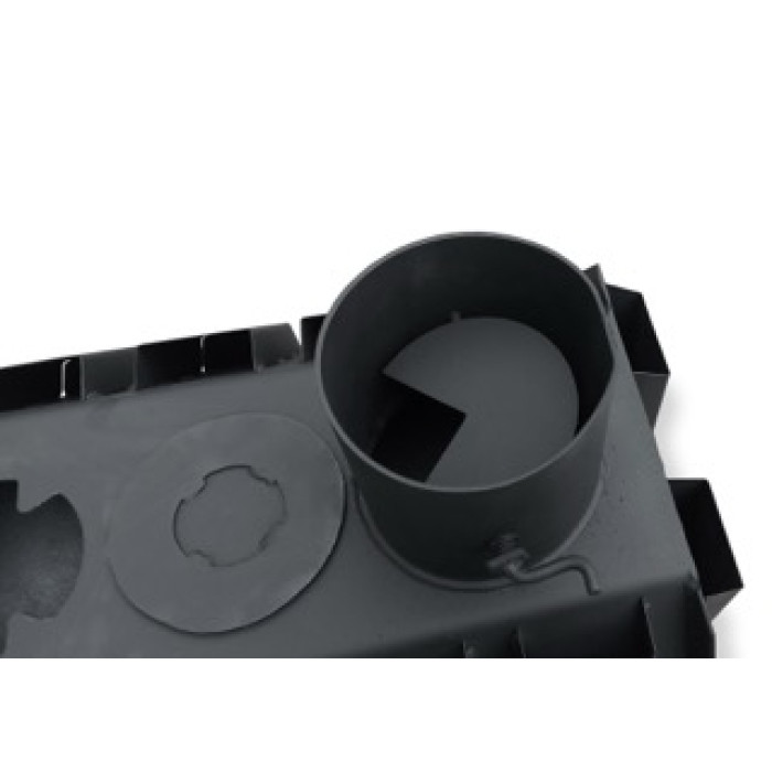 Выход на дымоход расположен вертикально сзади.