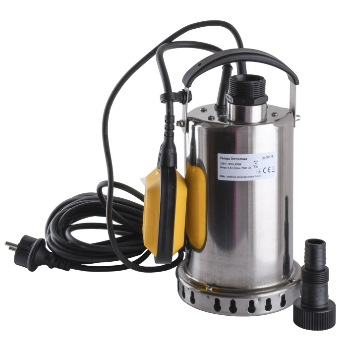Н = 7,0 м, Q = 7,5 м3/ч (125 л/мин), Р = 400 Вт, глубина погружения до 5 м, подключения ¾” та 1”