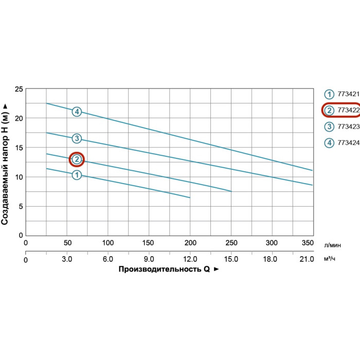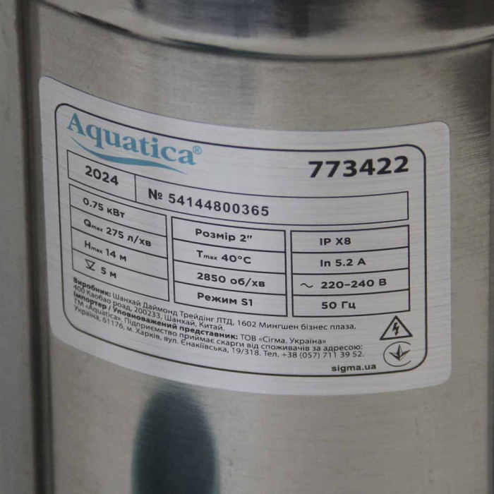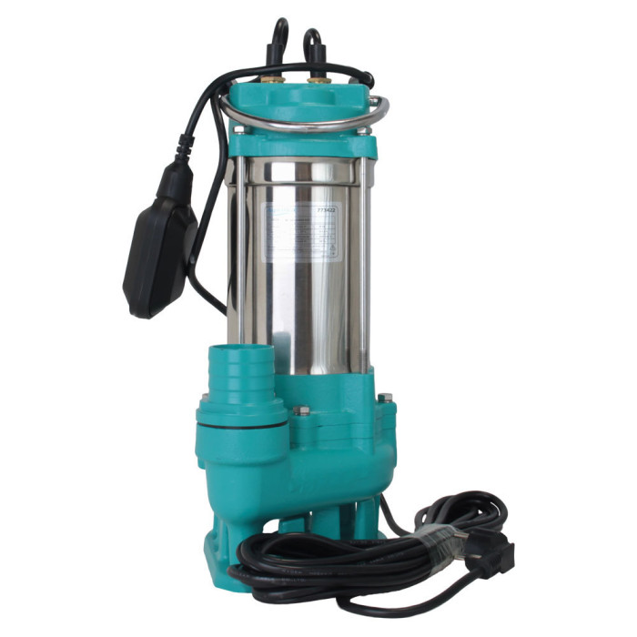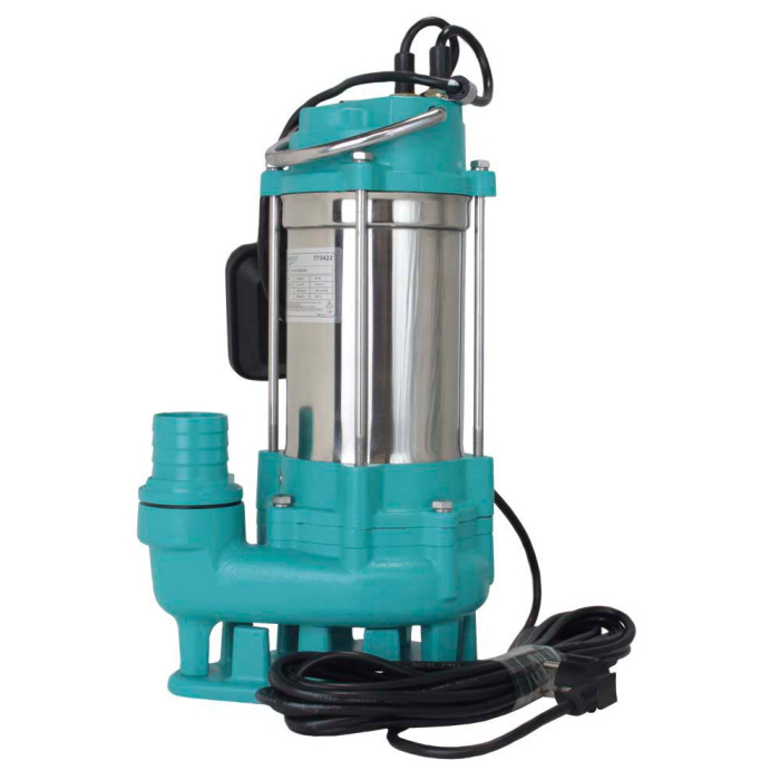 Н = 14 м, Q = 16,5 м3/ч (275 л/мин), Р = 750 Вт, медная обмотка, глубина погружения до 5 м, чугунный патрубок 2”, с поплавковым выключателем, без режущего механизма