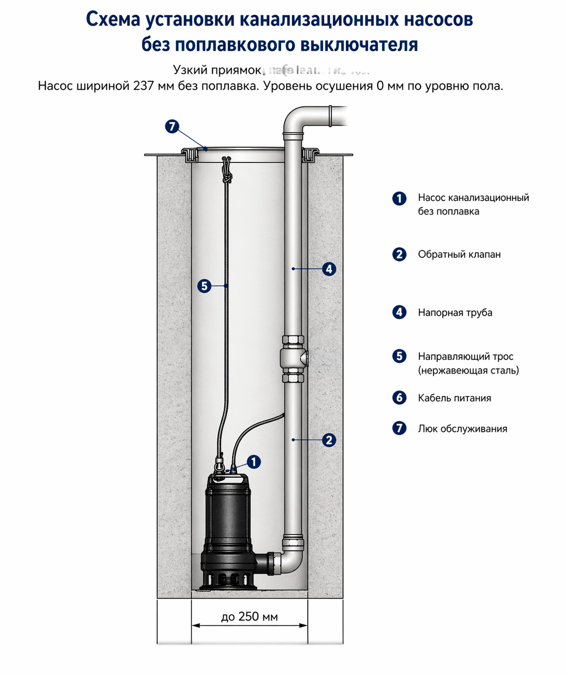 | Минимальный уровень осушения, мм | 10 (для откачки "в ноль" используется приямок) |