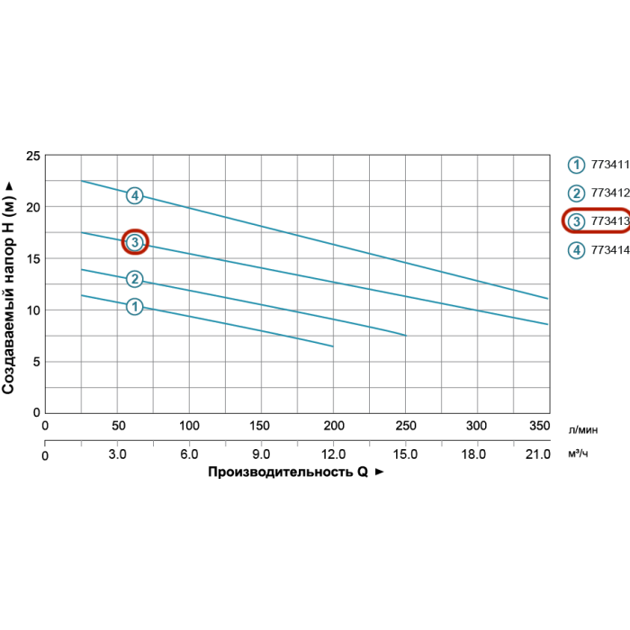 | Максимальная подача, куб.м/ч | 21 куб.м/ч (350 л/мин) |