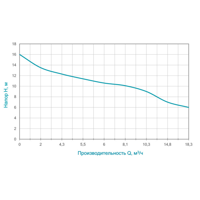 Н = 16 м, Q = 22,8 м3/ч (380 л/мин), Р = 2000 Вт, медная обмотка, глубина погружения до 5 м, чугунный патрубок 2”, с поплавковым выключателем, с режущим механизмом