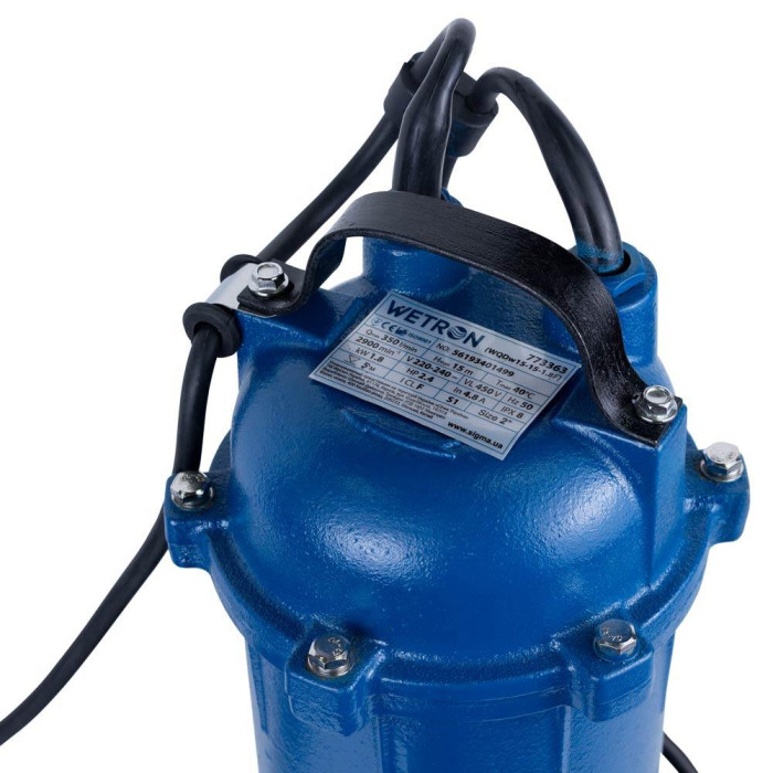 Канализационный фекальный насос Wetron WQDw10-8-1.1F 1,1 кВт – одноступенчатый центробежный насос с полуоткрытым чугунным рабочим колесом, без режущего механизма, с поплавковым выключателем — предназначен для откачивания фекальных, сильно грязных сточных вод. Рассчитан для работы с химически агрессивными жидкостями, с грязными водами, содержащими ил, песок и другие механические включения диаметром до 45 мм.