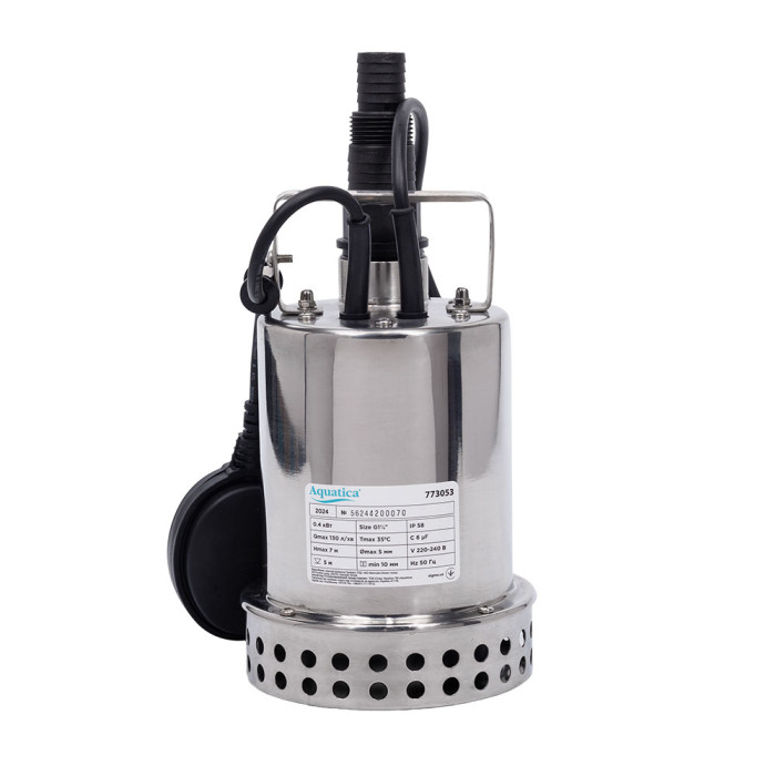 Дренажный садовый насос Aquatica ELL7-7-0.4 представляет собой одноступенчатый центробежный погружной насос в корпусе из нержавеющей стали, предназначенный для работы в системах низкого давления с чистой водой без абразивосодержащих примесей (песка, глины, извести и т.д.) и волокнистых включений.