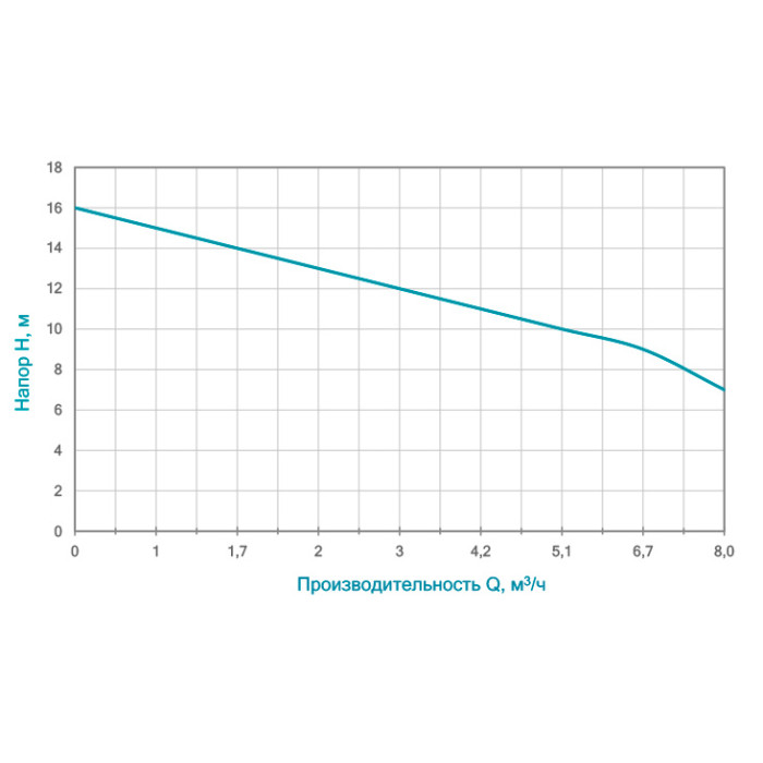 | Максимальный напор, м | 16 |