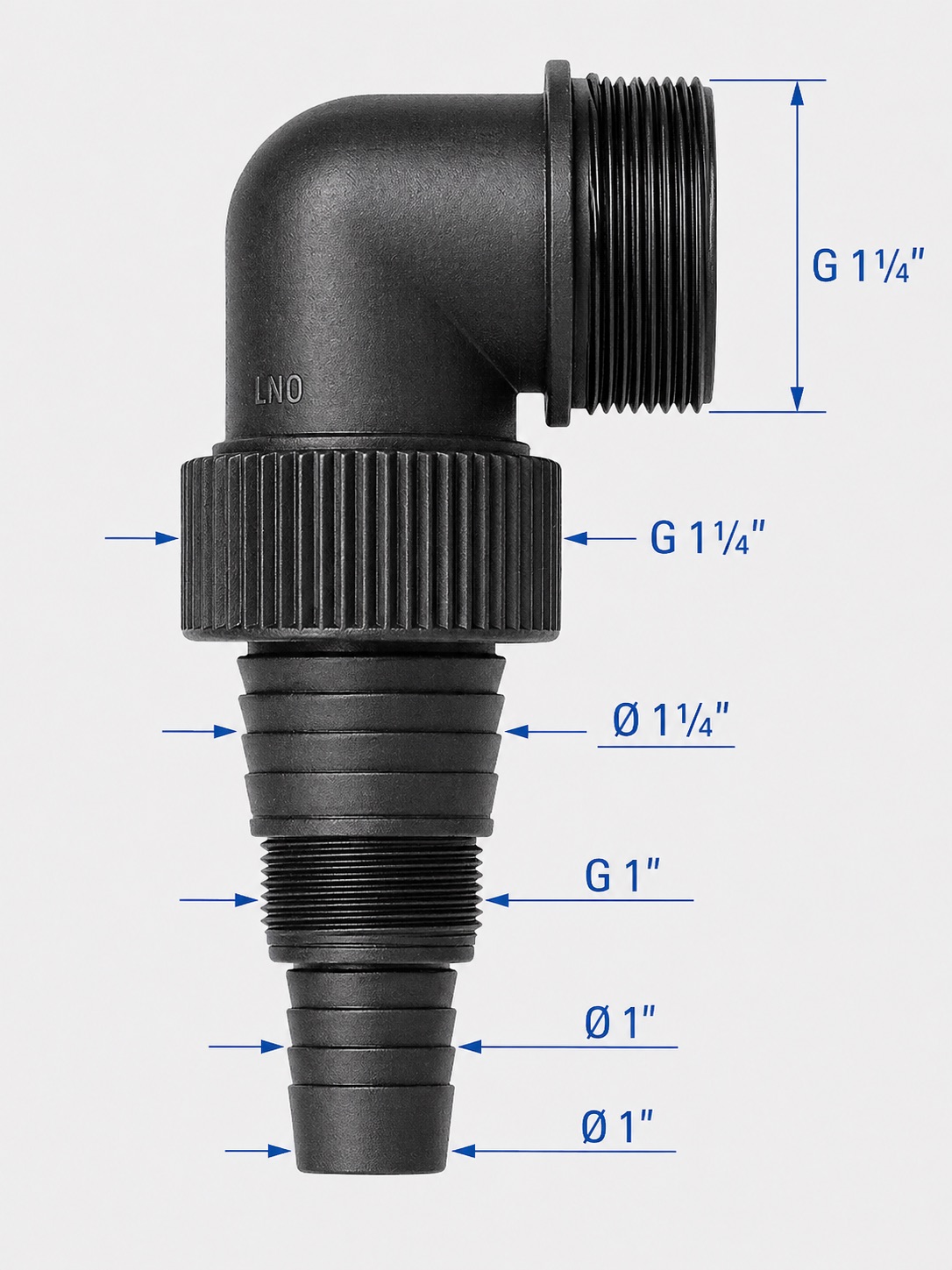| Диаметр штуцера, дюйм | Патрубок - G1¼”; переходник - 1”-G1”-1¼” |