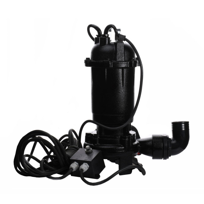 Н = 12,0 м, Q = 10 м3/ч (166 л/мин), Р = 1300 Вт, глубина погружения до 5 м, подключение 2”, с режущим механизмом