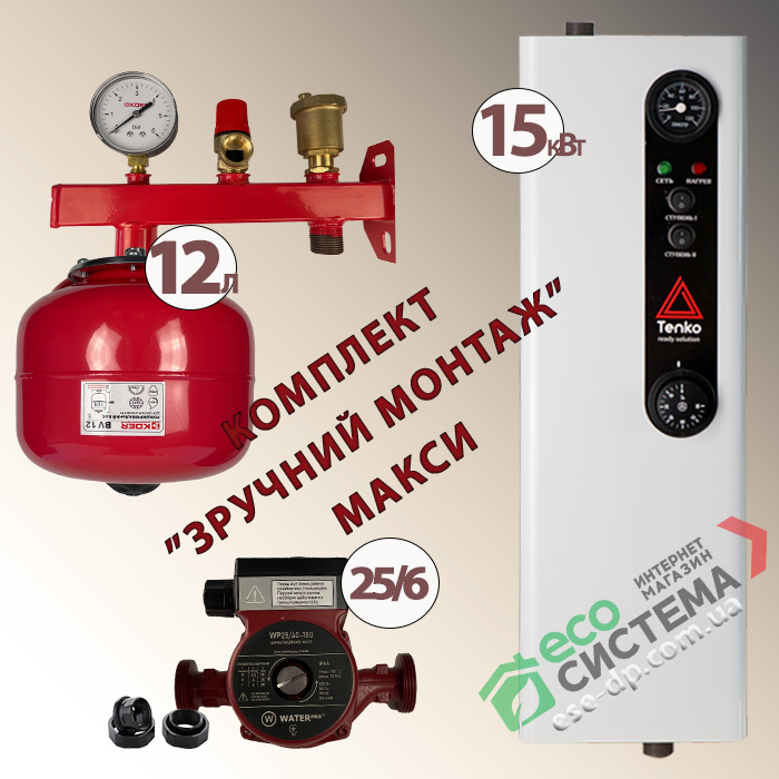 Котел: Три ступени мощности: 5 – 10 – 15 кВт | Ручной термостат IMIT 0-90°С | Тихое магнитное реле | Защита от перегрева | Термометр IMIT | Вывод под насос | Выход на внешнее устройство