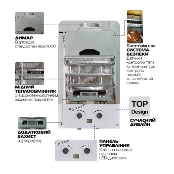 Модель предназначена для нагрева проточной воды в системе водоснабжения. Она обеспечивает производительность от 5 до 10 литров в минуту при ΔT= 50°C / 25°C