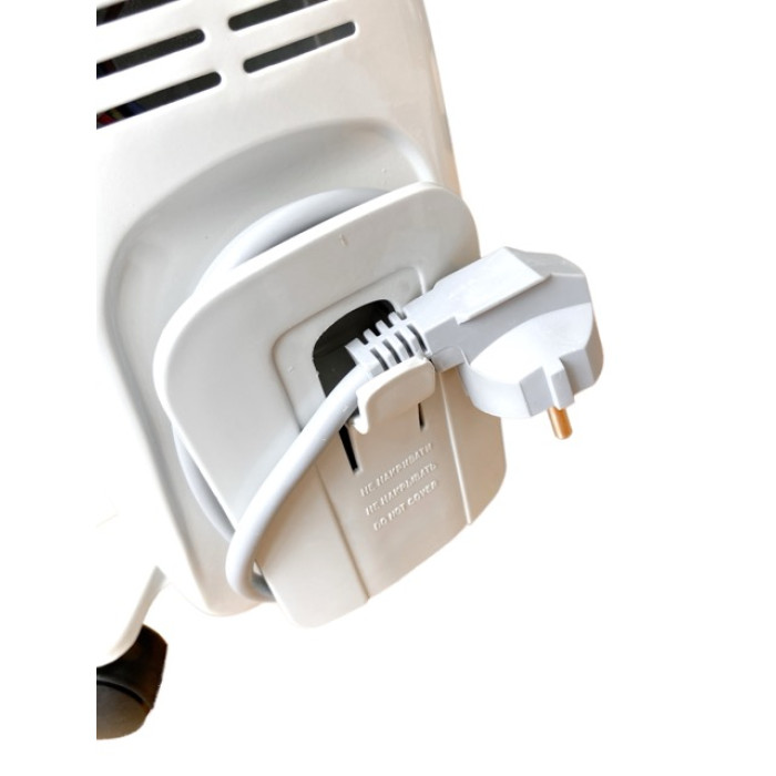 Масляный радиатор оборудован термостатом для установки и автоматического поддержания желаемой температуры в помещении с функцией защиты помещения от замораживания (поддержание температуры в помещении в пределах 5...7 °С), ступенчатым регулятором потребляемой мощности, защитой от перегрева и отключением питания при опрокидывании.
