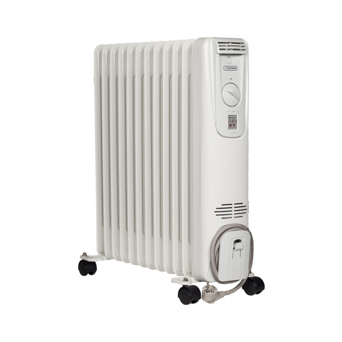 Масляный радиатор ТЕРМІЯ оборудован термостатом для установки и автоматического поддержания желаемой температуры в помещении с функцией защиты помещения от замораживания (поддержание температуры в помещении в пределах 5...7 °С), ступенчатым регулятором потребляемой мощности, защитой от перегрева и отключением питания при опрокидывании.