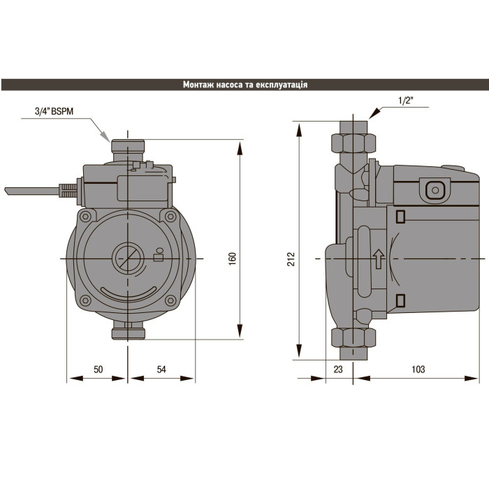 | Диаметр соединительных патрубков, дюйм | - насос - G¾-B; - переходник - G½ |