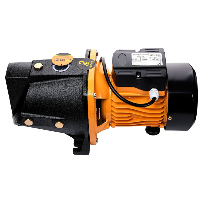 Насос Optima JET150 относится к центробежному самовсасывающему типу и оснащён одним латунным рабочим колесом. Формирование напора происходит за счёт центробежной силы, возникающей при вращении рабочего колеса и воздействии его лопаток на перекачиваемую жидкость. Забор воды с глубины до 9 метров обеспечивается встроенным эжектором (трубкой Вентури), расположенным в корпусе насоса.
