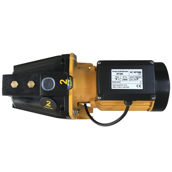 Насос Optima JET200 относится к центробежному самовсасывающему типу и оснащён одним латунным рабочим колесом. Формирование напора происходит за счёт центробежной силы, возникающей при вращении рабочего колеса и воздействии его лопаток на перекачиваемую жидкость. Забор воды с глубины до 9 метров обеспечивается встроенным эжектором (трубкой Вентури), расположенным в корпусе насоса.