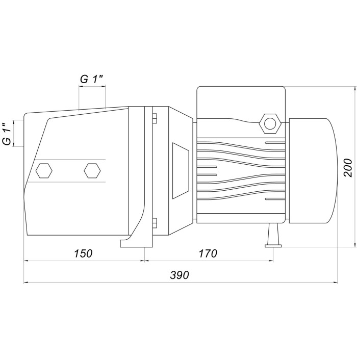 Н = 40 м, Q = 2,7 м3/ч (45 л/мин), Р = 800 Вт, глубина всасывания до 9 м, подключение G1-B, рабочее колесо – полимер
