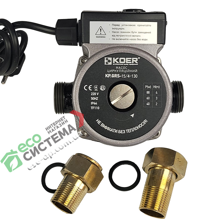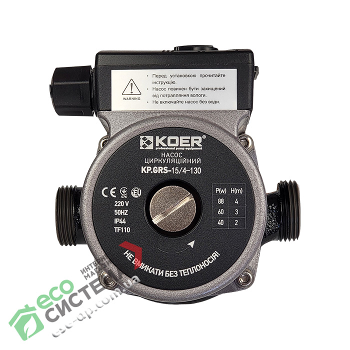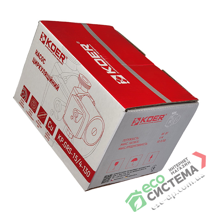 Насос циркуляционный KOER с мокрым ротором KP.GRS-15/4-130Циркуляционные электронасосы серии KOER KP.GRS-15/4 130 предназначены для перекачивания рабочих жидкостей в одно- и двухтрубных системах отопления открытого и закрытого типа при стабильном или слабо меняющемся расходе рабочей жидкости в системах отопления, подогрева полов, водоснабжения горячей водой.