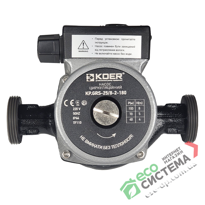 Насос циркуляционный KOER с мокрым ротором KP.GRS-25/8-2-180Циркуляционные электронасосы серии KOER KP.GRS-25/8-2-180 предназначены для перекачивания рабочих жидкостей в одно- и двухтрубных системах отопления открытого и закрытого типа при стабильном или слабо меняющемся расходе рабочей жидкости в системах отопления, подогрева полов, водоснабжения горячей водой.