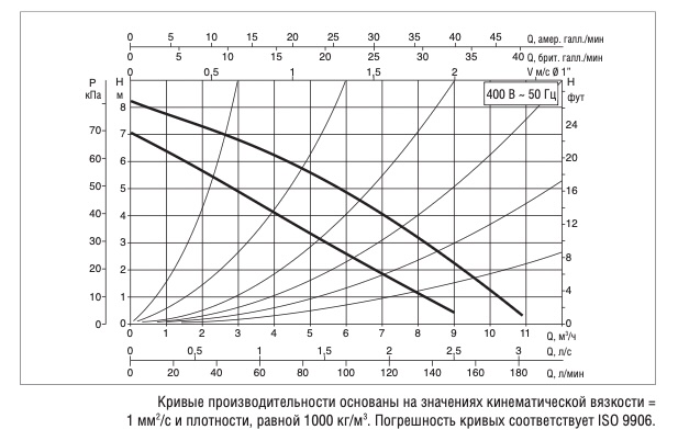 - во избежание кавитационного шума давление на всасывании должно быть не менее 1,5 м водяного столба при температуре +90°С