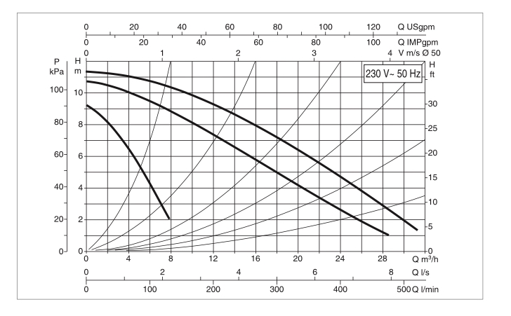 Потребляемая мощность до 870 Вт, максимальный напор до 11,2 м, максимальная подача 31 куб.м/час.