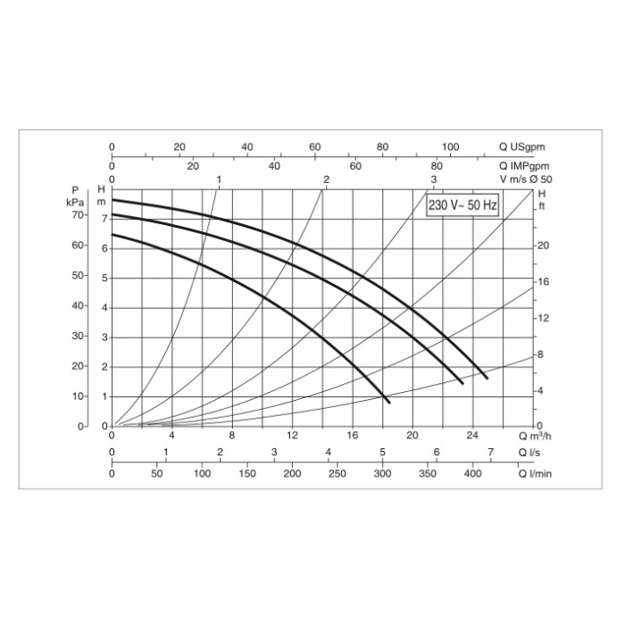 Потребляемая мощность до 595 Вт, максимальный напор до 7,6 м, максимальная подача 25 куб.м/час.