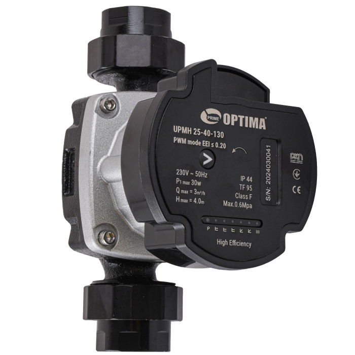 Optima UPMH 25-40 AUTO 130 мм — циркуляционный насос для горячей воды, предназначенный для работы в отопительных системах с постоянным или изменяемым расходом теплоносителя, а также в контурах с колебаниями температуры в напорной магистрали. Оборудование подходит для перекачивания воды и чистых, маловязких, химически нейтральных и невзрывоопасных жидкостей.