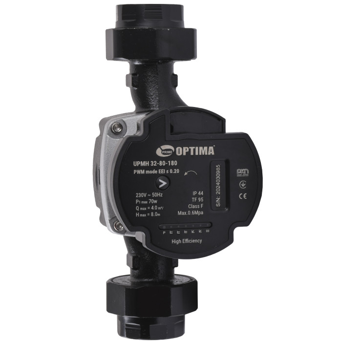 Optima UPMH 32-80 AUTO 180 мм — циркуляционный насос для горячей воды, предназначенный для работы в отопительных системах с постоянным или изменяемым расходом теплоносителя, а также в контурах с колебаниями температуры в напорной магистрали. Оборудование подходит для перекачивания воды и чистых, маловязких, химически нейтральных и невзрывоопасных жидкостей.