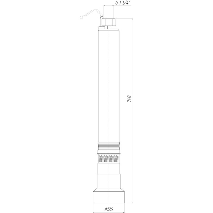 Насос выполнен в цилиндрическом корпусе, внутри которого расположен электродвигатель и система рабочих колес. Многоступенчатая (7 рабочих колес) центробежная система обеспечивает стабильный напор и эффективную подачу воды.