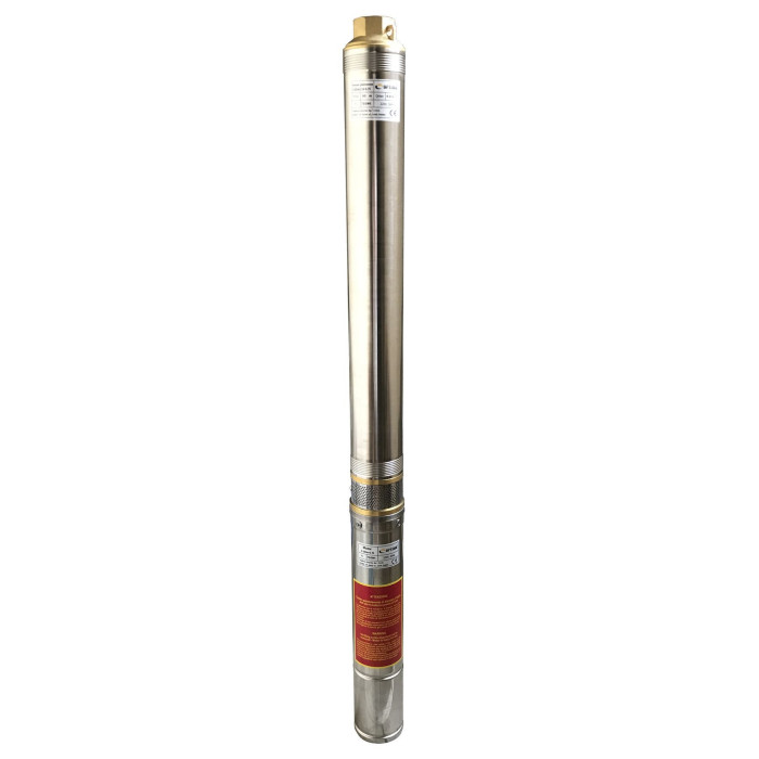 Диаметр корпуса 3,5” (87 мм), Н = 73 м, Q = 4,8 м3/ч (80 л/мин), Р = 550 Вт, подключение G1½”, пульт, кабель 15 м, погружение до 68 м