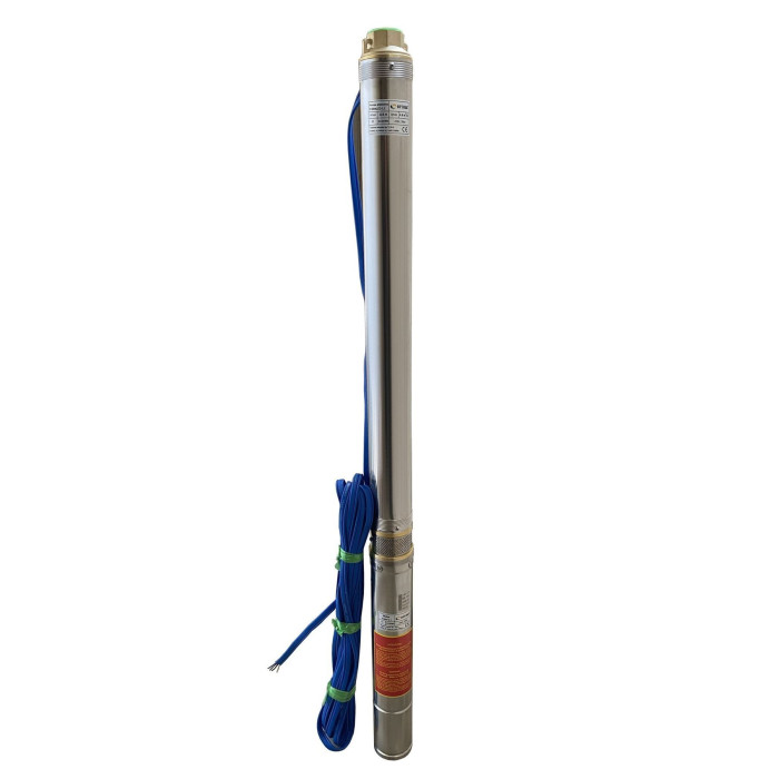 Диаметр корпуса 3,5” (87 мм), Н = 123 м, Q = 4,8 м3/ч (80 л/мин), Р = 1100 Вт, подключение G1½”, пульт, кабель 15 м, погружение до 100 м