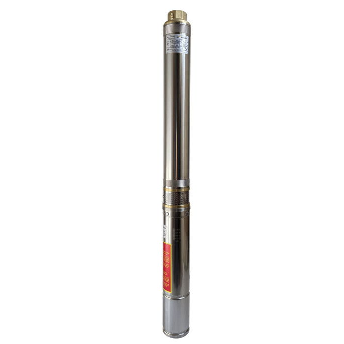 Диаметр корпуса 3,5” (87 мм), Н = 62 м, Q = 60 м3/ч (100 л/мин), Р = 550 Вт, подключение G1½”, пульт, кабель 1,5 м, погружение до 57 м