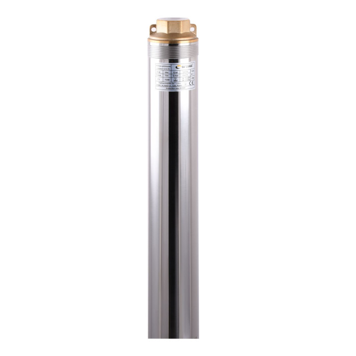 Диаметр корпуса 3,5” (87 мм), Н = 72 м, Q = 60 м3/ч (100 л/мин), Р = 750 Вт, подключение G1½”, пульт, кабель 1,5 м, погружение до 67 м