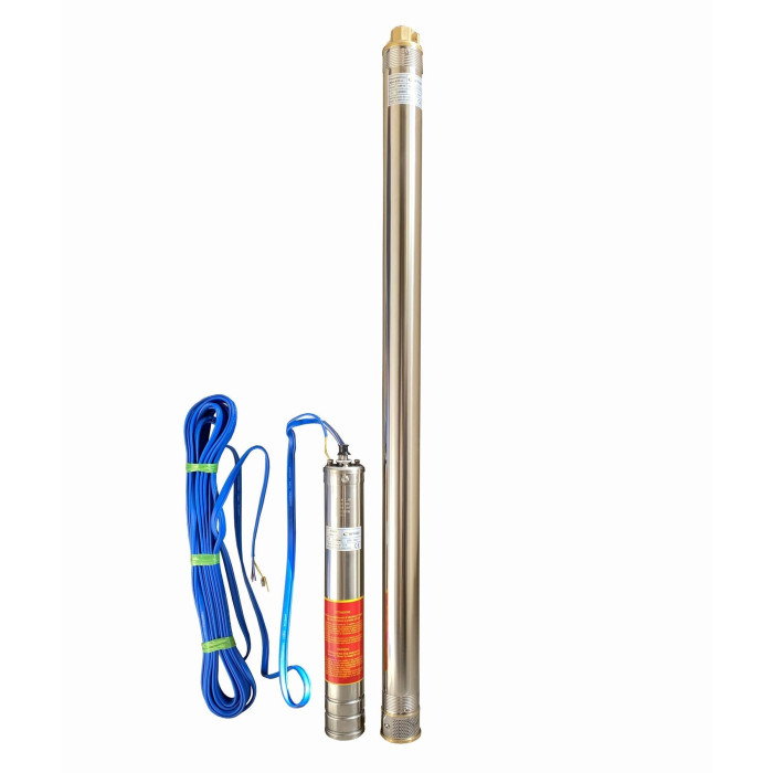 Диаметр корпуса 3” (76 мм), Нном/макс = 111/159 м, Qном/макс = 1,8/2,7 м3/ч (30/45 л/мин), Р = 1100 Вт, подключение G1”, пульт, кабель 1,5 м, погружение до 100 м