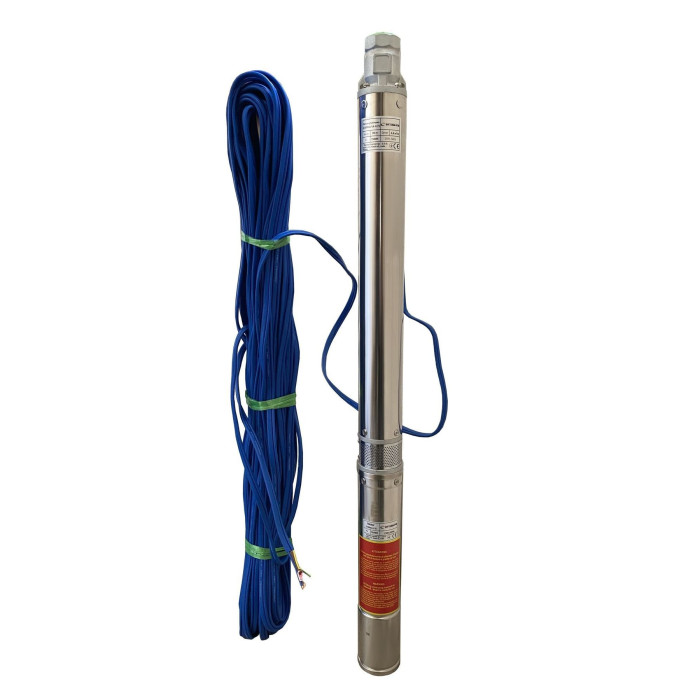 Диаметр 3,5” (87 мм), Н = 100 м, Q = 4,8 м3/ч (80 л/мин), Р = 750 Вт, подключение G1½”, кабель 60 м, погружение до 65 м
