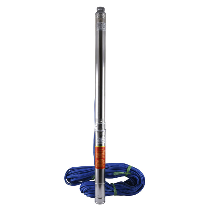 Диаметр 3” (76 мм), Н = 90 м, Q = 3,6 м3/ч (60 л/мин), Р = 750 Вт, подключение G1¼”, кабель 55 м, погружение до 20 м