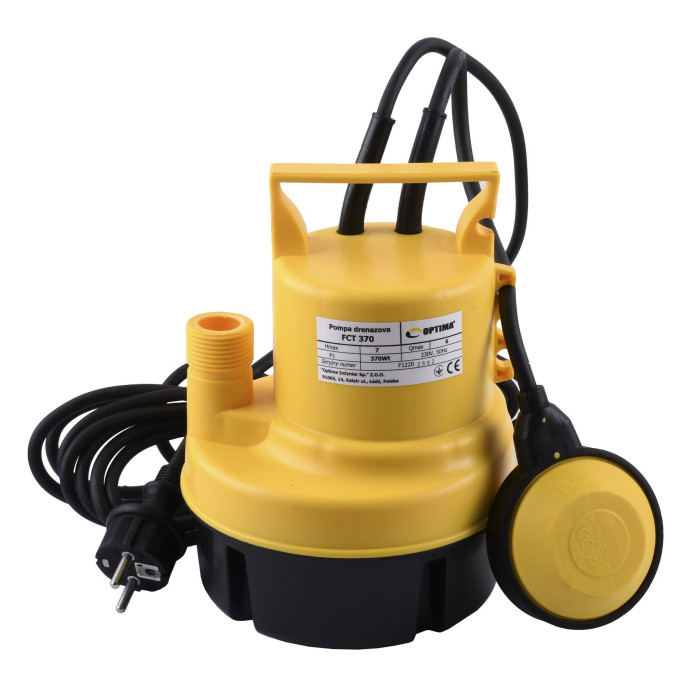 Насос дренажний Optima FCT 370 з вимикачем поплавця — призначений для відкачування чистої води води з колодязів, льохів, ставків і резервуарів, а також для зниження рівня грунтових вод. Основними перевагами насоса є простота та надійність конструкції, а також покращене сальникове ущільнення.