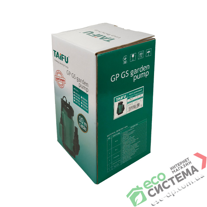 Занурювальні дренажні насоси Taifu GS-400 призначені для відкачування дощових, стічних та фільтраційних вод. Використовуються для осушення підтоплених приміщень; наповнення та осушення басейнів; подачі води з неглибоких колодязів, цистерн та відкритих водойм; для зрошення у сільському господарстві.