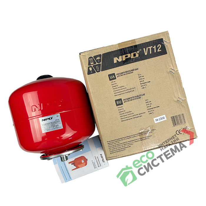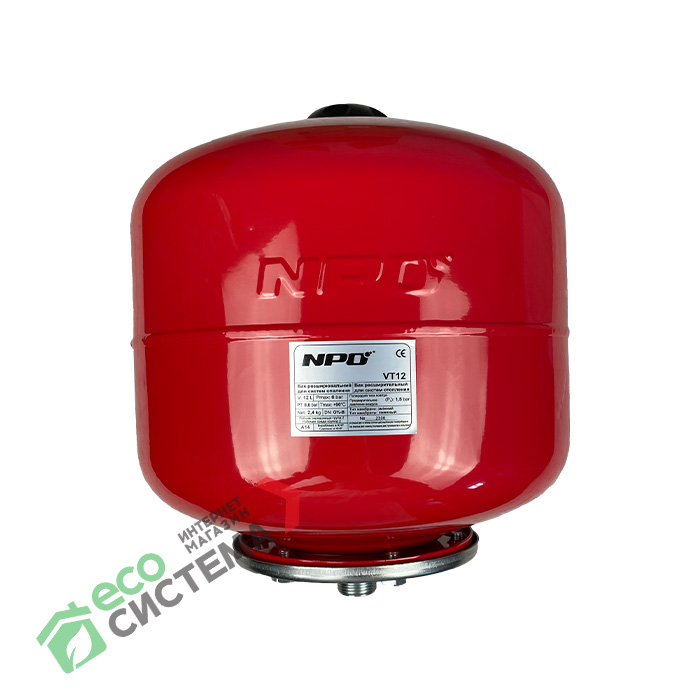 Круглий розширювальний бачок NPO VT об'ємом 12 літрів призначений для компенсації розширення обсягу води (теплоносія) та забезпечення постійного тиску в замкнутих системах опалення загальною ємністю до 120 л.