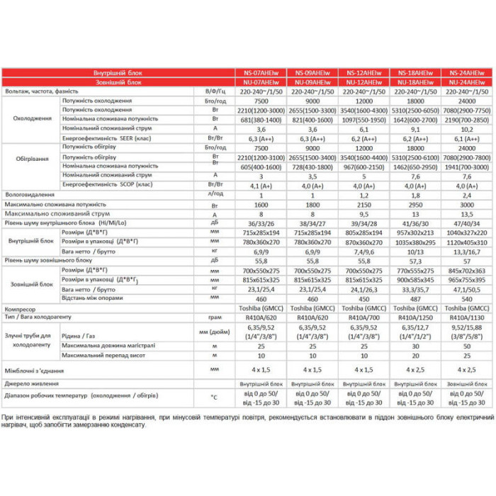 Робочий діапазон температур зовнішнього повітря (на обігрів), °С | від -15С до + 24С |