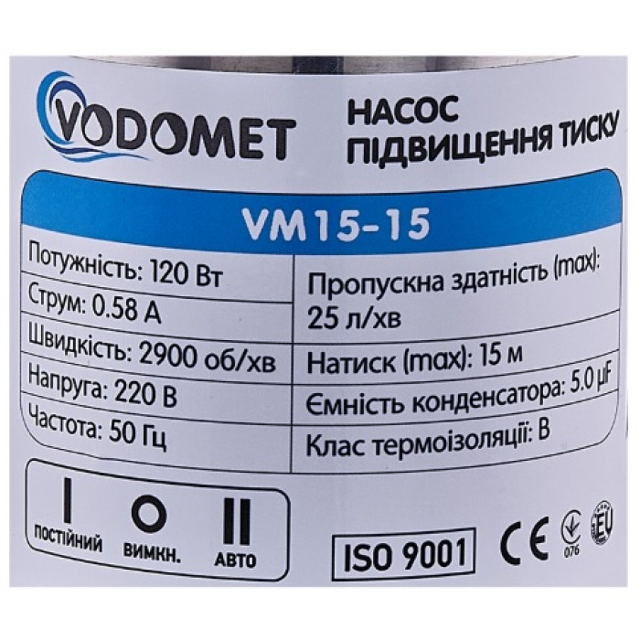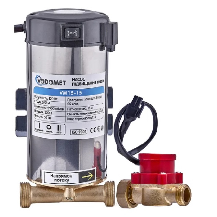 Відцентровий електронасос VODOMET VM15-15 призначений для забезпечення стабільного тиску в системах подачі чистої води, підвищуючи комфорт використання водопровідної мережі. Підвищення напору в одному або кількох вузлах споживання гарячої або холодної води шляхом підвищення тиску системи водопостачання. Цей насос є ідеальним рішенням для використання у домашніх умовах, а також у комерційних та промислових об'єктах.