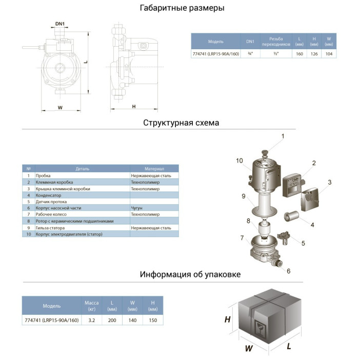 | Габаритні розміри упаковки, мм | 200 × 150 × 140 |