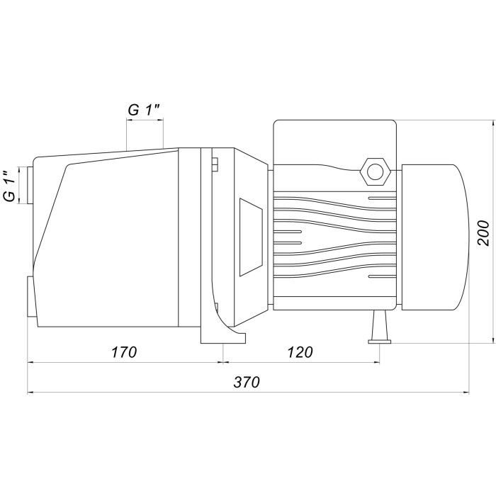 Н = 45 м, Q = 3,0 м3/год (50 л/хв), Р = 1100 Вт, глибина всмоктування до 9 м, підключення G1-B, скорочений корпус