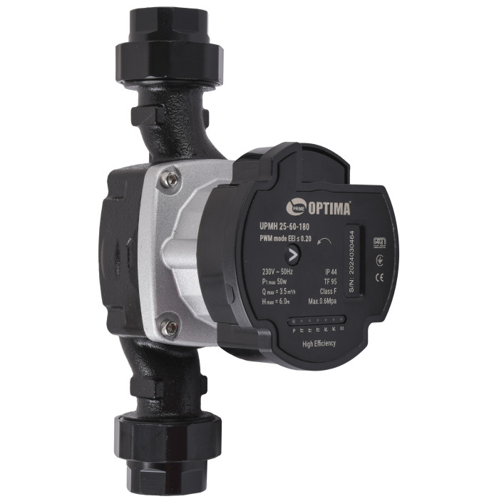 Optima PRIME UPMH 25-60 AUTO 180 – циркуляційний насос для гарячої води, призначений для роботи в опалювальних системах з постійною або змінною витратою теплоносія, а також в контурах з коливаннями температури в напірній магістралі. Обладнання підходить для перекачування води та чистих, малов'язких, хімічно нейтральних та невибухонебезпечних рідин.