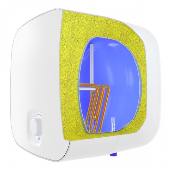 Бойлер оснащен механическим термостатом и медным «мокрым» ТЭНом мощностью 2000 Вт, который обеспечивает нагрев воды от 15 ⁰C до максимальной в 65 ±5 ⁰C за 27 минут.