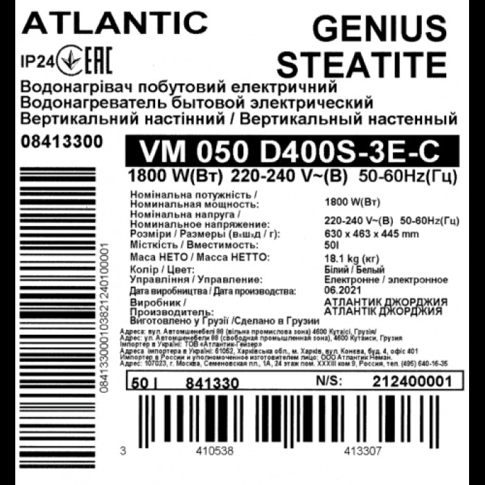 Atlantic Steatite Genius VM 080 D400S-3E-C — современный накопительный электрический водонагреватель от французского бренда Atlantic.
