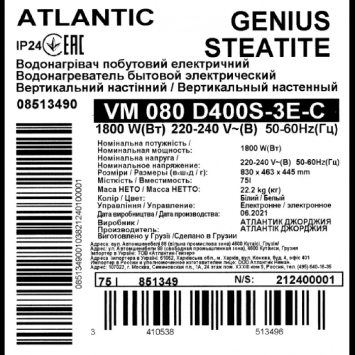 Atlantic Steatite Genius VM 100 D400S-3E-C — современный накопительный электрический водонагреватель от французского бренда Atlantic.