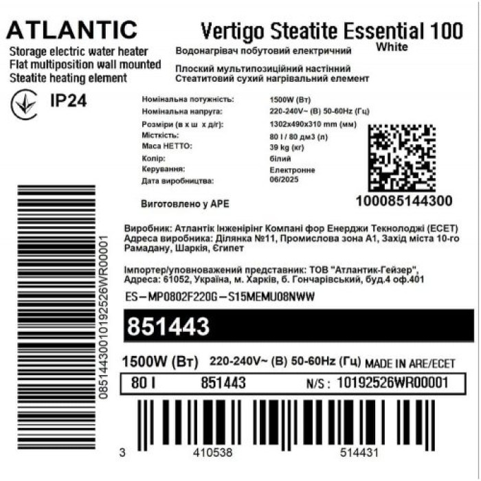 Гарантия производителя на рабочий бак водонагревателя серии Vertigo Steatite Essential составляет 7 лет, на электрическую часть – 2 года.