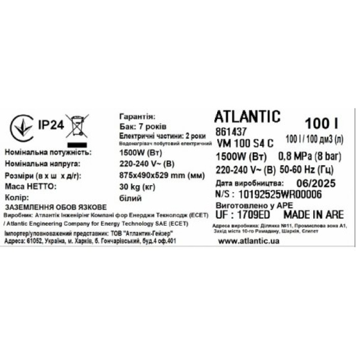 Гарантия производителя на рабочий бак водонагревателя серии STEATITE CUBE составляет 7 лет, на электрическую часть - 2 года.