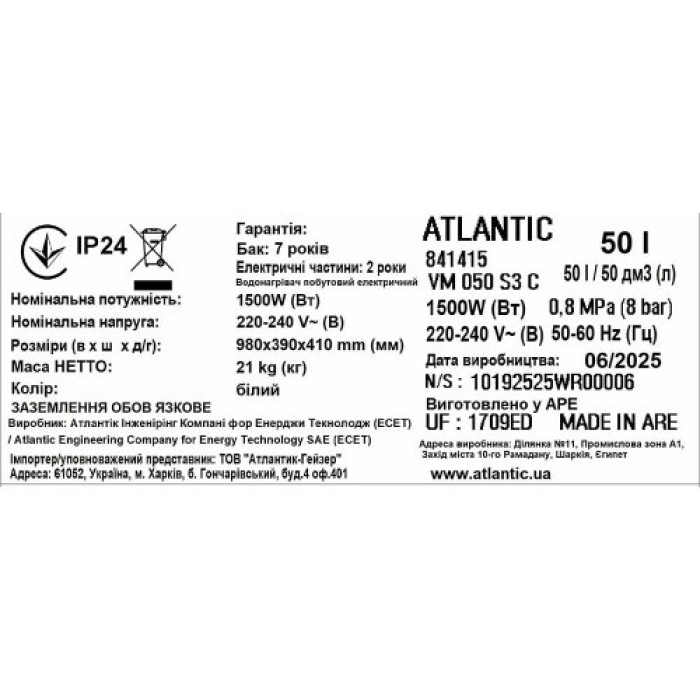 Гарантия производителя на рабочий бак водонагревателя серии STEATITE CUBE составляет 7 лет, на электрическую часть - 2 года.