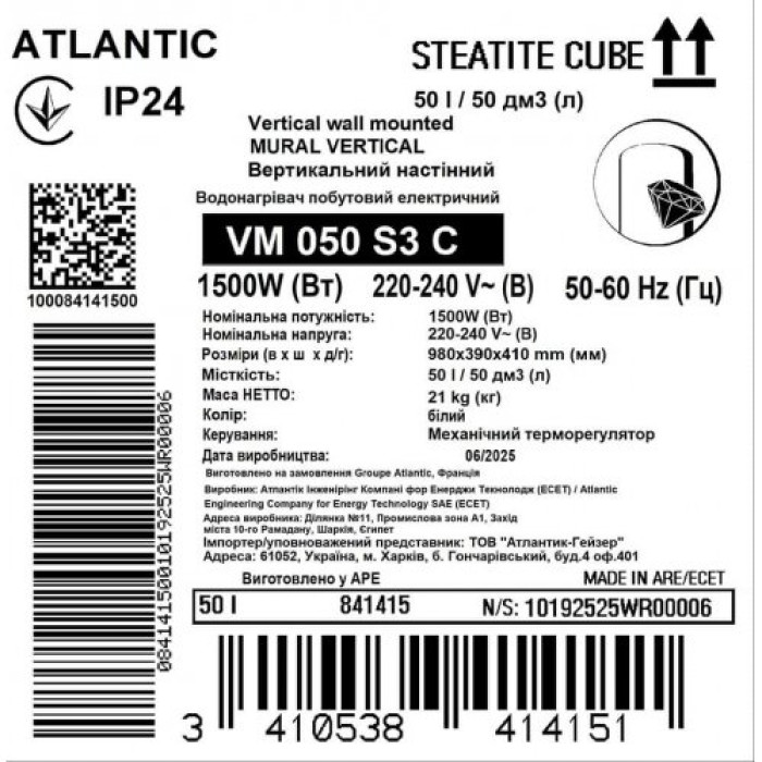 Электрический бойлер накопительного типа ATLANTIC STEATITE CUBE VM 50 S3С 1500 W предназначен для нагрева 50 л воды для кухни или душа. Новый дизайн в форме призмы вписывается в самый изысканный интерьер квартиры или частного дома. Его легко можно встроить в мебель.