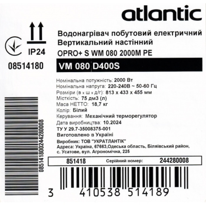 Atlantic Opro+ VM 080 D400S (2000W) — это современный электрический водонагреватель, созданный для комфортного и безопасного снабжение вашего дома горячей водой. Этот водонагреватель сочетает инновационные технологии, высокую эффективность и стильный дизайн, что делает его оптимальным решением для небольших семей.
